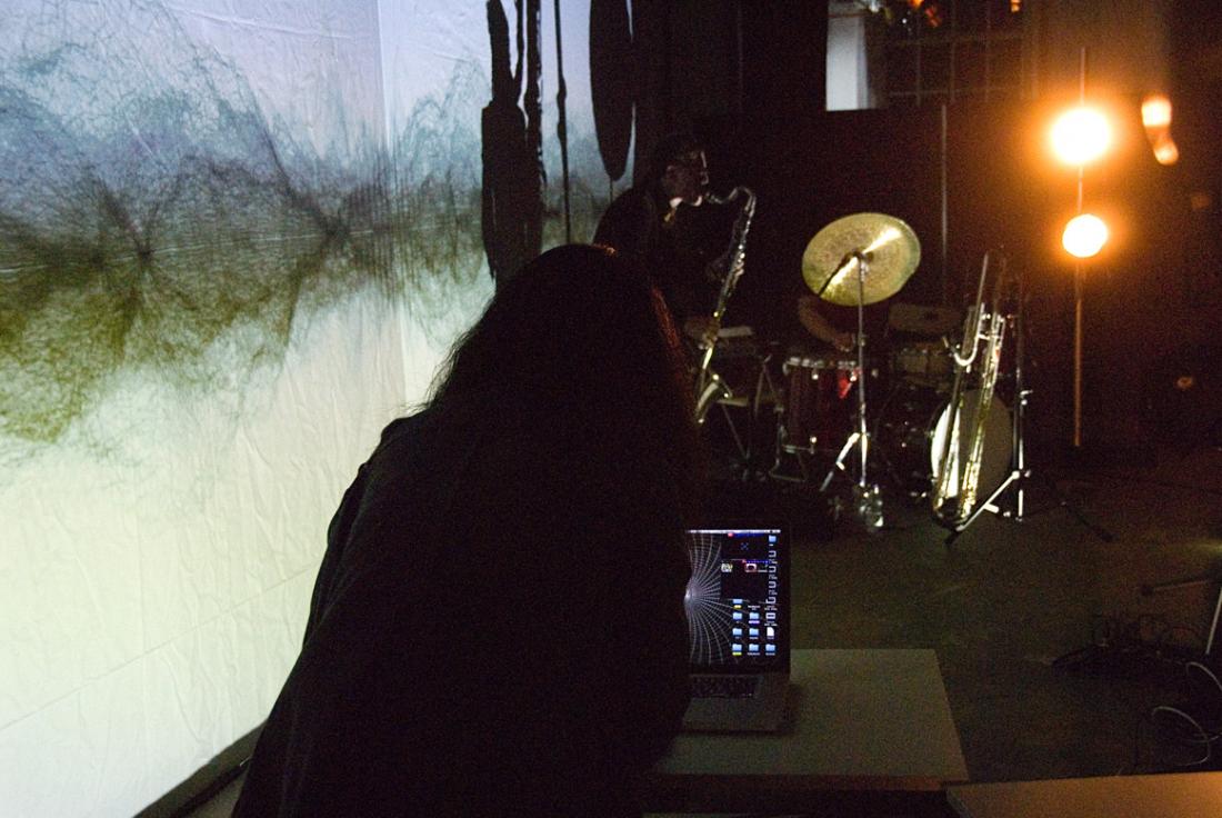 Qu Qianwen (visuals), Fabian Jung (drums), Florian Walter (klarinette)