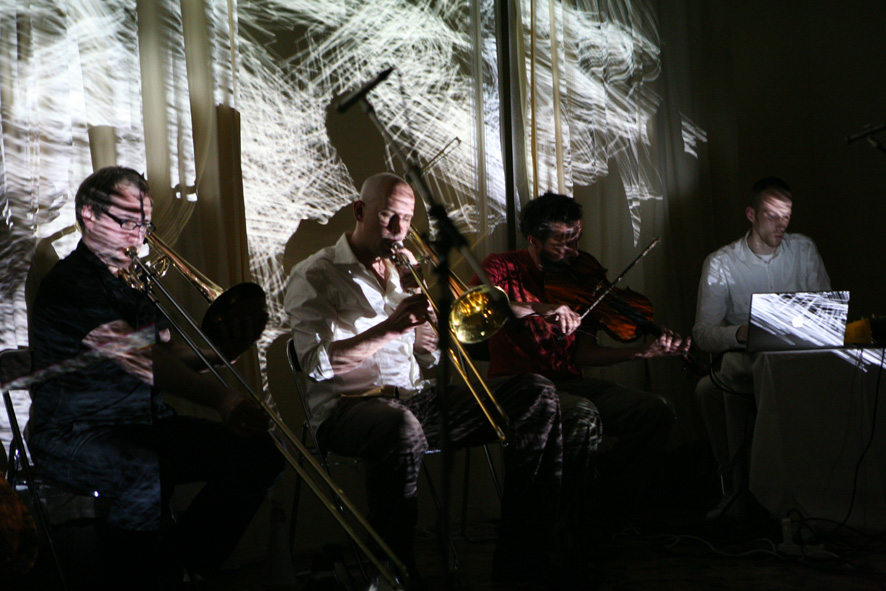 Clare Cooper (gu zheng), Michel Doneda (soprano saxophone), Frank Gratkowski (saxophone), Lars Graugaard (electronics), Sven Hahne (electronics and video), Adam Javorka (viola), Albert Markos (violoncello), Matthias Muche (trombone), Kim Myhr (guitar), Hasse Poulsen (guitar), Daniel Riegler (trombone), Leo Riegler (electronics), Martin Taxt (tuba), Clayton Thomas (double bass), Raed Yassin (open circuit electronics), Christian Weber (double bass)