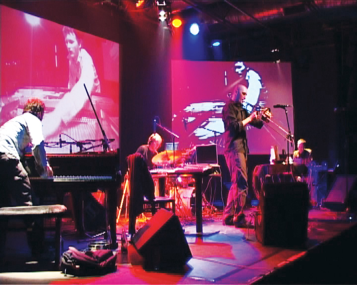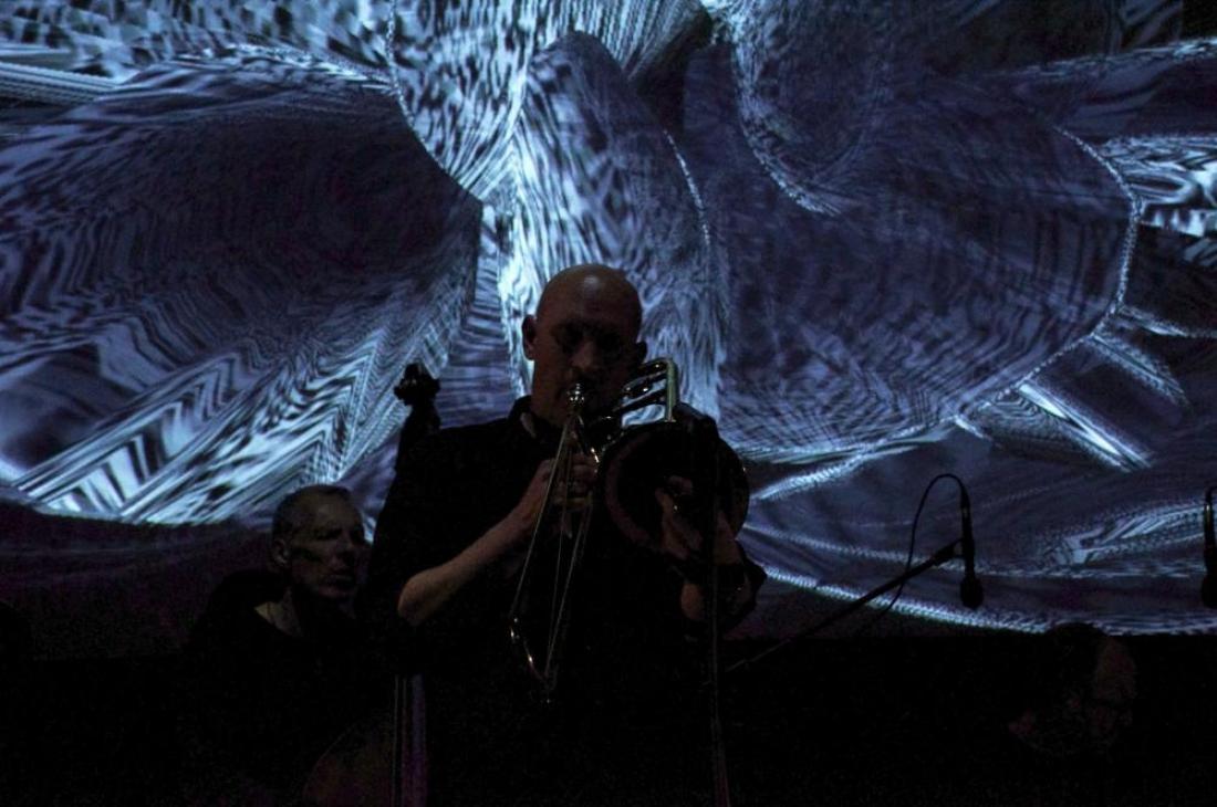 Video und Musik stehen gleichberechtigt auf der Bühne. Strukturen, Farben und Intentionen springen zwischen Bild und Ton über, die Gruppe kreiert einen eigene, tiefen Zwischenraum, der den Zuhörer in unbekannte Bereiche seiner Wahrnehmung entführt.